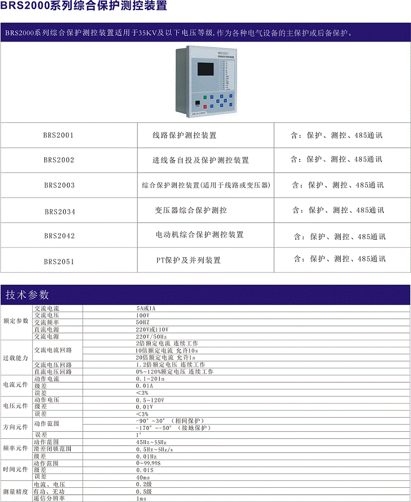 BRS2000系列微機保護測控裝置是在多年實踐應用和運行經驗的基礎上,吸取了國內外微機保護裝置現(xiàn)有的先進技術,研制推出的新一代微機保護測控裝置。廣泛適用于電力、水利、石油、化工等行業(yè)35KV及以下電壓等級系統(tǒng),作為各種電氣設備的主保護或后備保護。