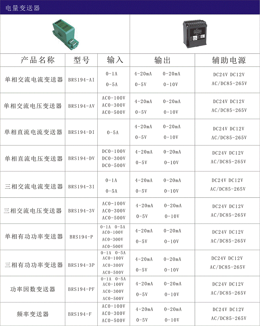 電量變送器是一種將被測(cè)電量(交流電壓、電流、有功功率、無(wú)功功率、有功電能、無(wú)功電能、頻率、相位、功率因數(shù)、直流電壓、電流等)轉(zhuǎn)換成按線性比例直流電流或電壓信號(hào)輸出(電能脈沖輸出)的測(cè)量?jī)x表,百瑞順電量變送器系列產(chǎn)品具有精度高,體積小、功耗小、頻響寬、抗干擾等特性。